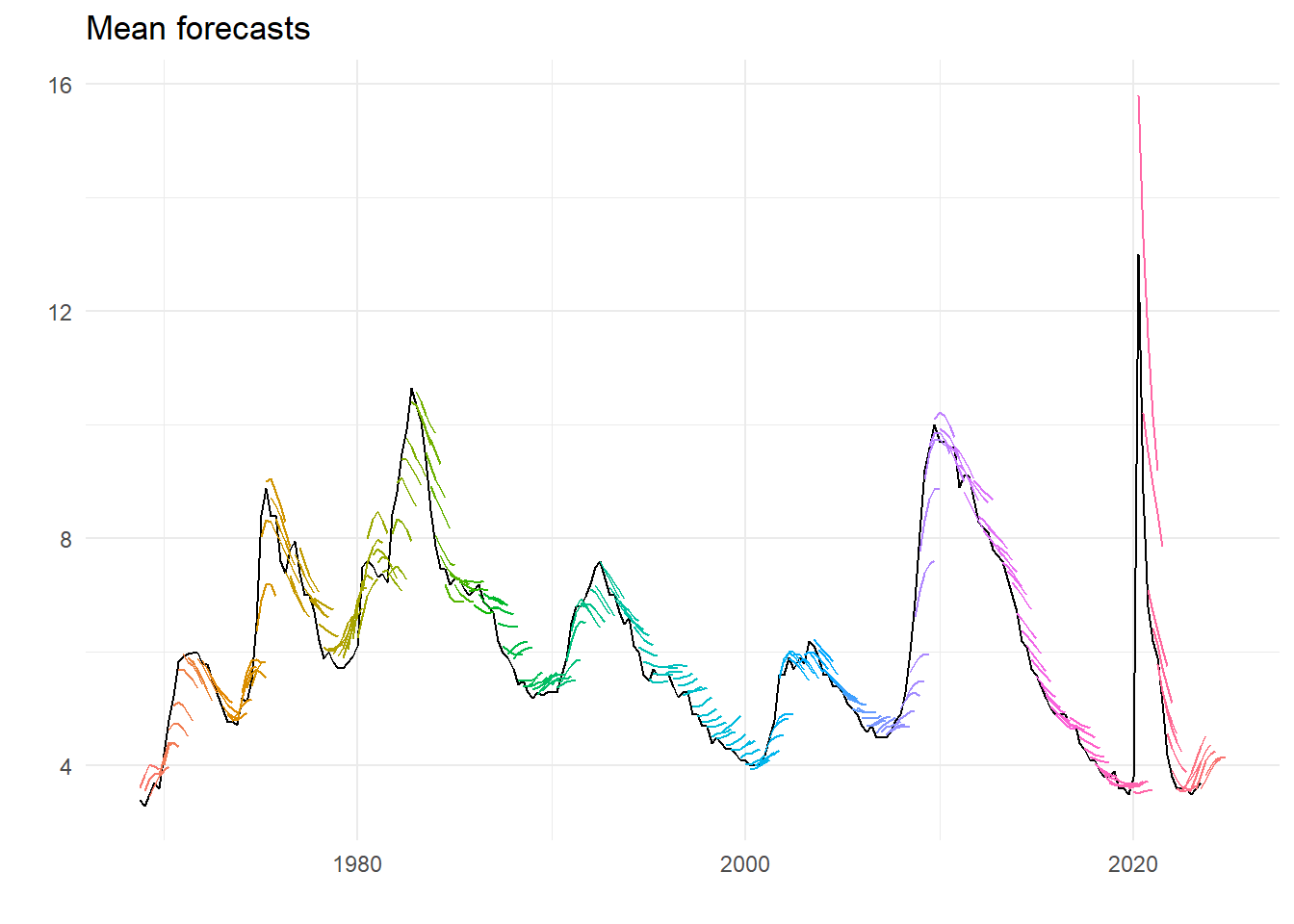 labs(title="Mean forecasts", x="", y="")